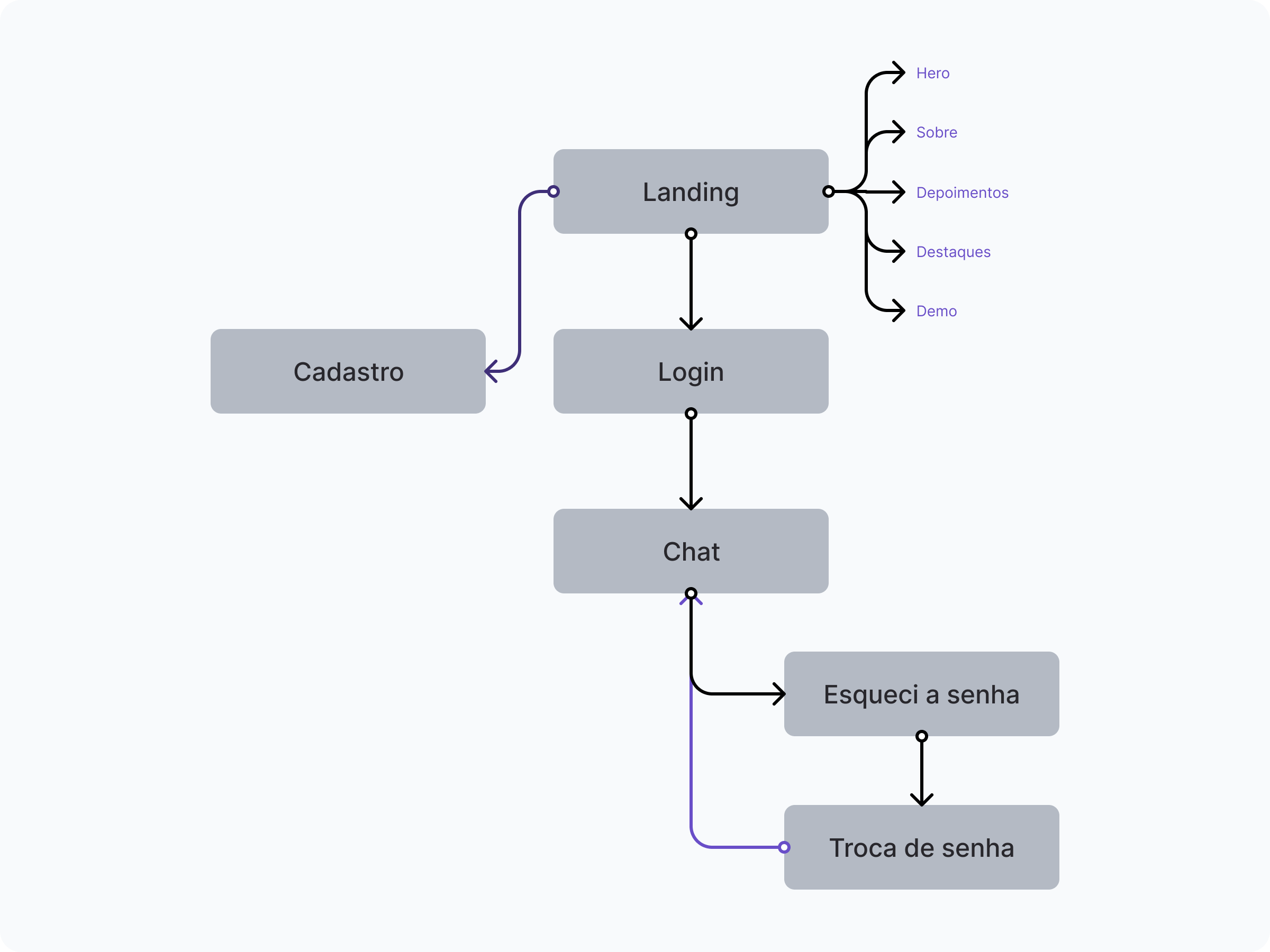 O fluxograma da LiS demonstra como os caminhos do usuário se conectam dentro da plataforma, facilitando a visualização da jornada e orientando ajustes para uma experiência mais simples e eficiente.